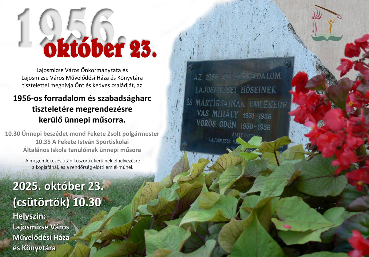 Tisztelettel várjuk október 23-án az 1956-os forradalom és szabadságharc tiszteletére rendezett megemlékezésre.