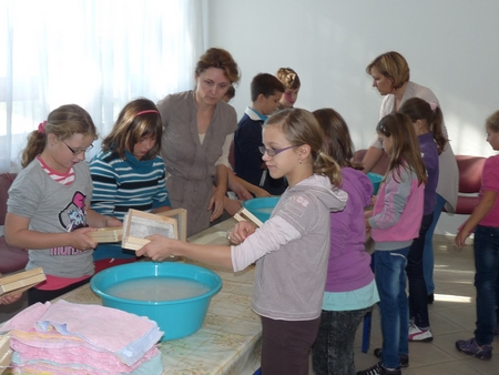 Papírmerítés a felsőlajosi iskolásokkal [2013.09.20.]