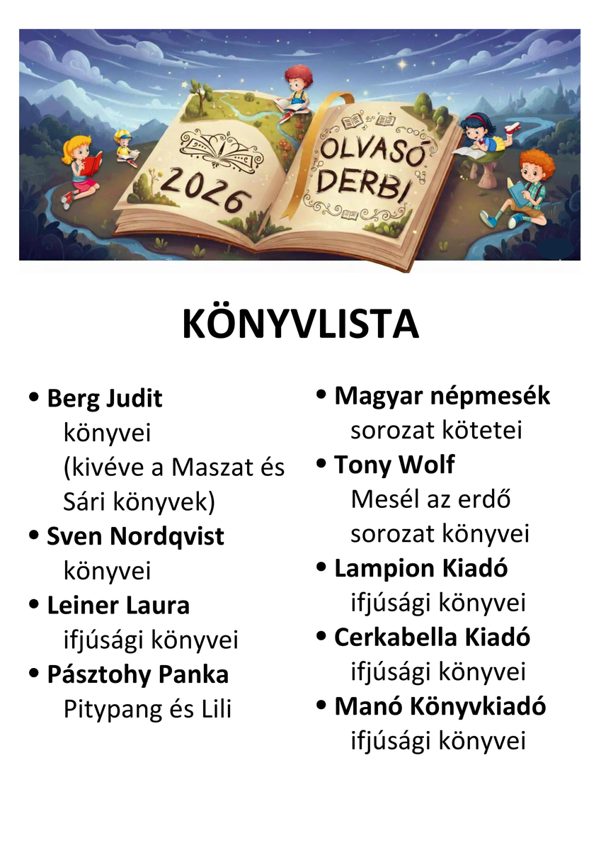 Újra meghírdetjük olvasási versenyünket a lajosmizsei általános iskolások számára, az Olvasó Derbit. Ismét sok érdekes, szórakoztató könyvet választottunk ki, hogy élmény legyen nektek az olvasás.